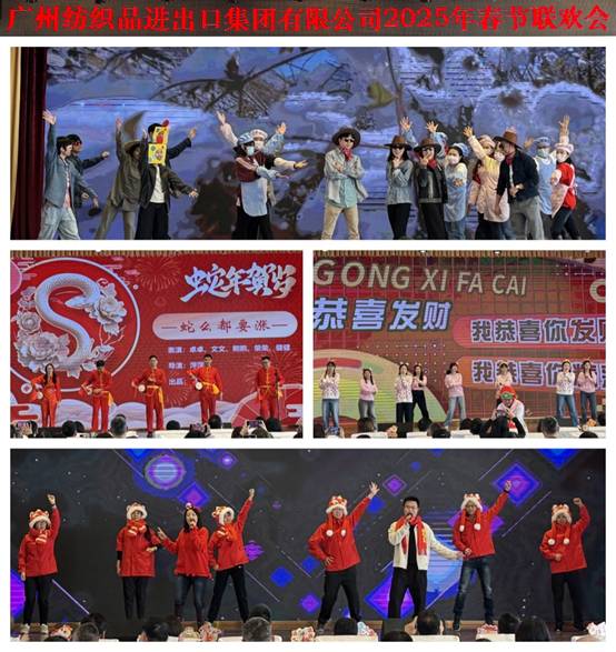 會議在歡樂的氛圍中進行最后一項議程——紡出公司春節(jié)文藝表演。節(jié)目以紡出公司領(lǐng)導班子帶領(lǐng)的《“我”的成長史》拉開序幕;《蛇么都要漲》以“三句半”的形式引起一片歡聲笑語;創(chuàng)意舞蹈秀《多財多億賀新春》把現(xiàn)場氣氛推向高潮;《漫步蛇年富貴平安》用歌聲表達了對新年的期許與美好祝福。