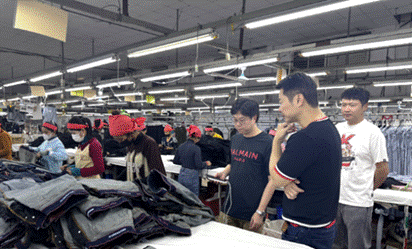 公司業(yè)務(wù)人員在孟加拉牛仔服裝生產(chǎn)基地現(xiàn)場(chǎng)