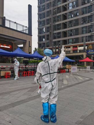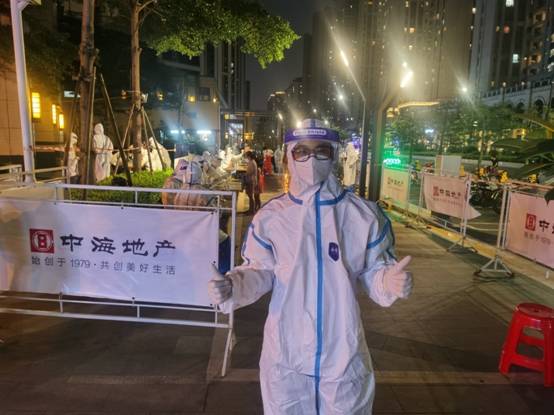 何俊杰在高風(fēng)險(xiǎn)地區(qū)參加廣州輕工集團(tuán)白鶴洞街臨時(shí)黨支部組織的志愿服務(wù)活動(dòng)