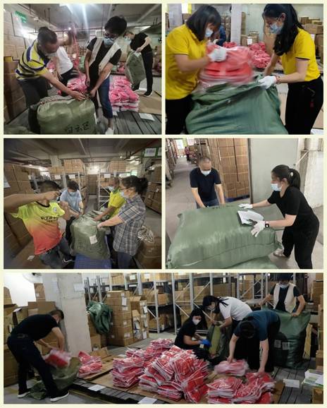 “請(qǐng)優(yōu)先配送白云區(qū)管控區(qū)!”“天河區(qū)安排300人支援白云區(qū),需要300件馬甲同步到位!”“疫情情況有變化,配送計(jì)劃要重新調(diào)整!”“需要增加6000件紅馬甲!”……正當(dāng)各項(xiàng)工作在有序開展時(shí),新的問題又出現(xiàn)了!回想起這些天的各種突發(fā)情況,利工民市場(chǎng)部負(fù)責(zé)人林丹最有體會(huì)。4月15日晚上11點(diǎn),林丹接到通知,要求立即安排300件紅馬甲派往疫情重災(zāi)區(qū)--白云區(qū)。由于當(dāng)時(shí)已是深夜,物流運(yùn)輸是一個(gè)大難題。為了能按時(shí)送到指定地點(diǎn),林丹直接聯(lián)系就近的供應(yīng)商,僅用30分鐘就完成了備貨并派送到指定地點(diǎn)。